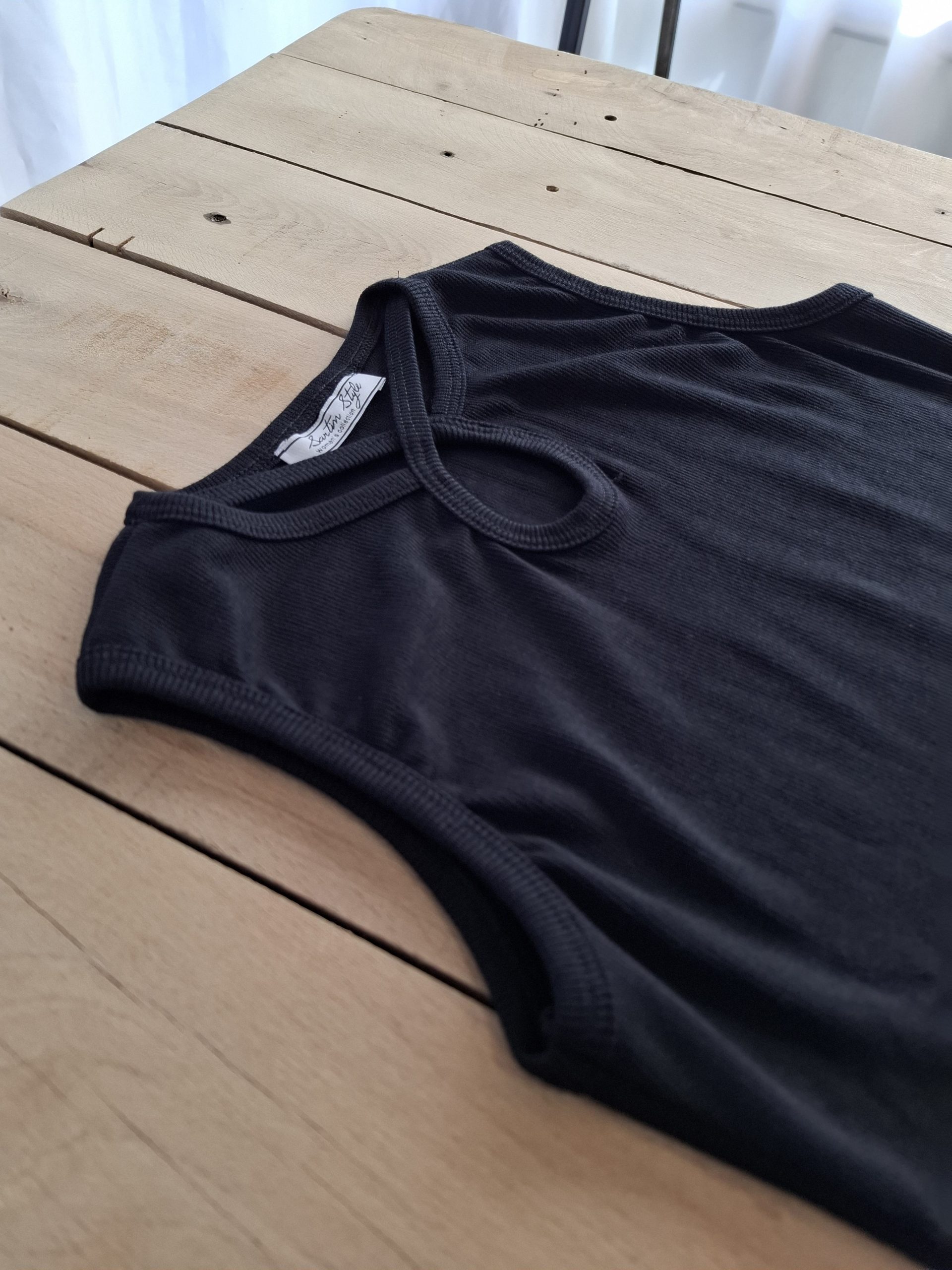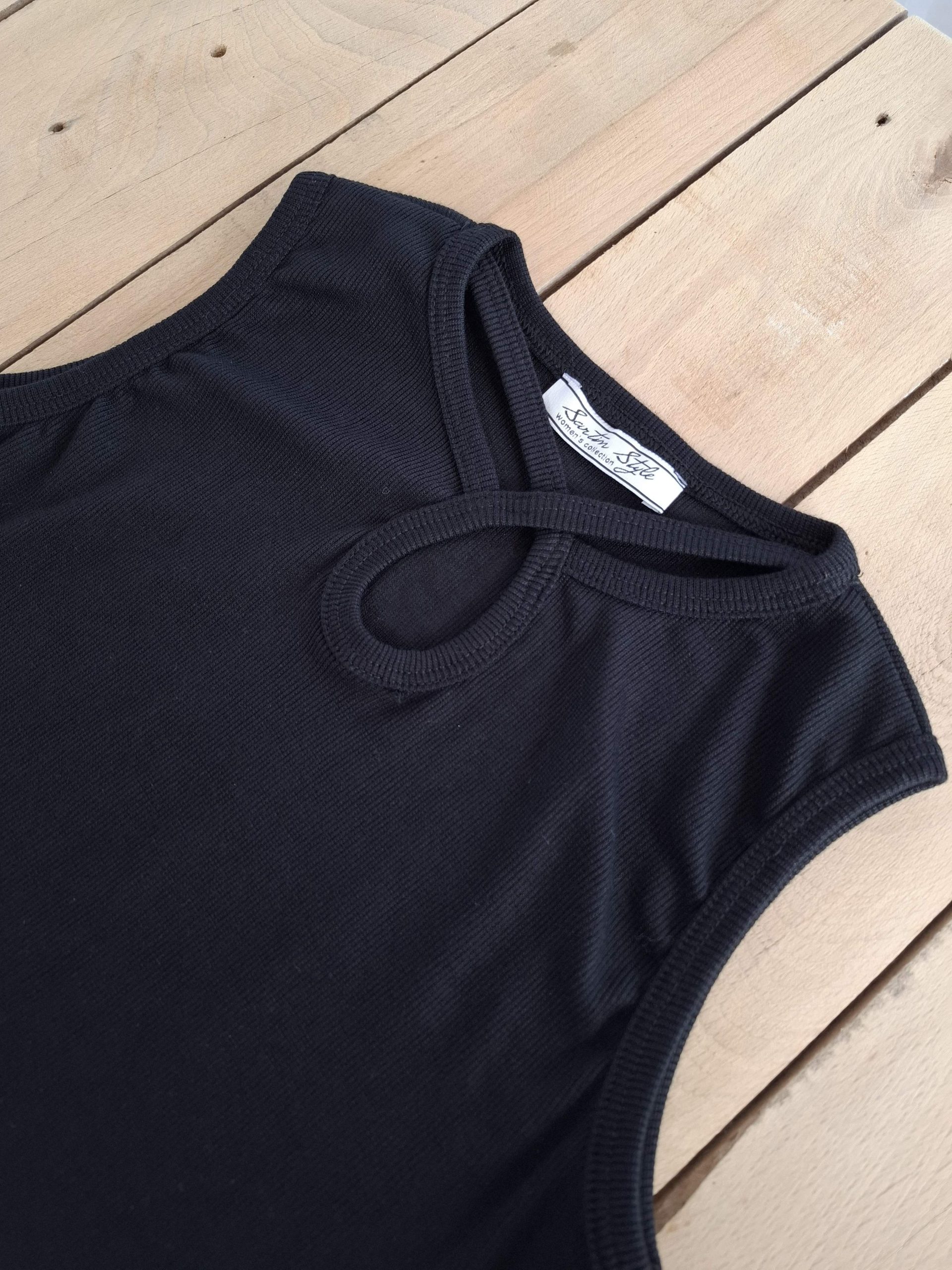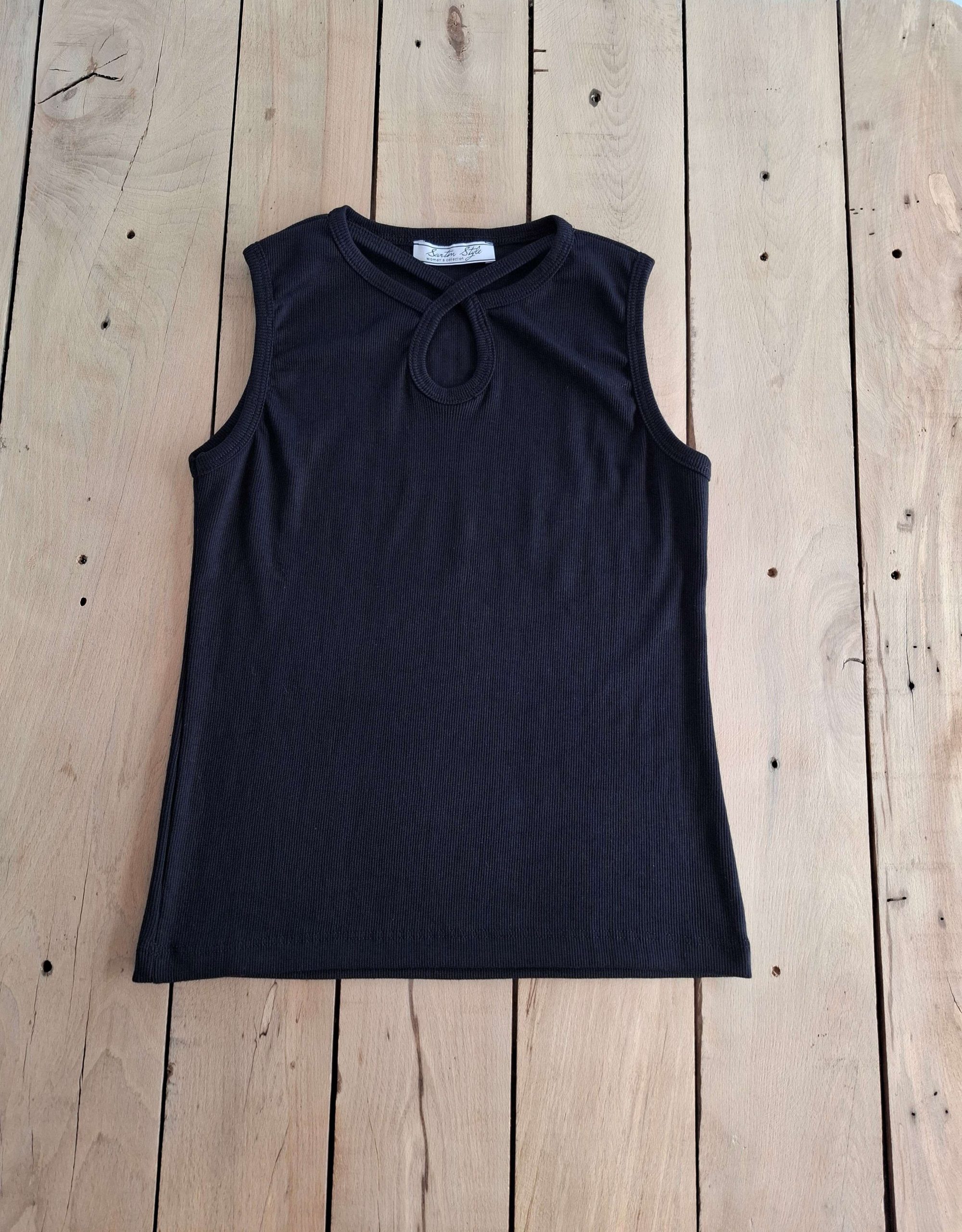 تاپ حلقه‌ای مشکی زنانه ساده و شیک برای استایل روزمره است.