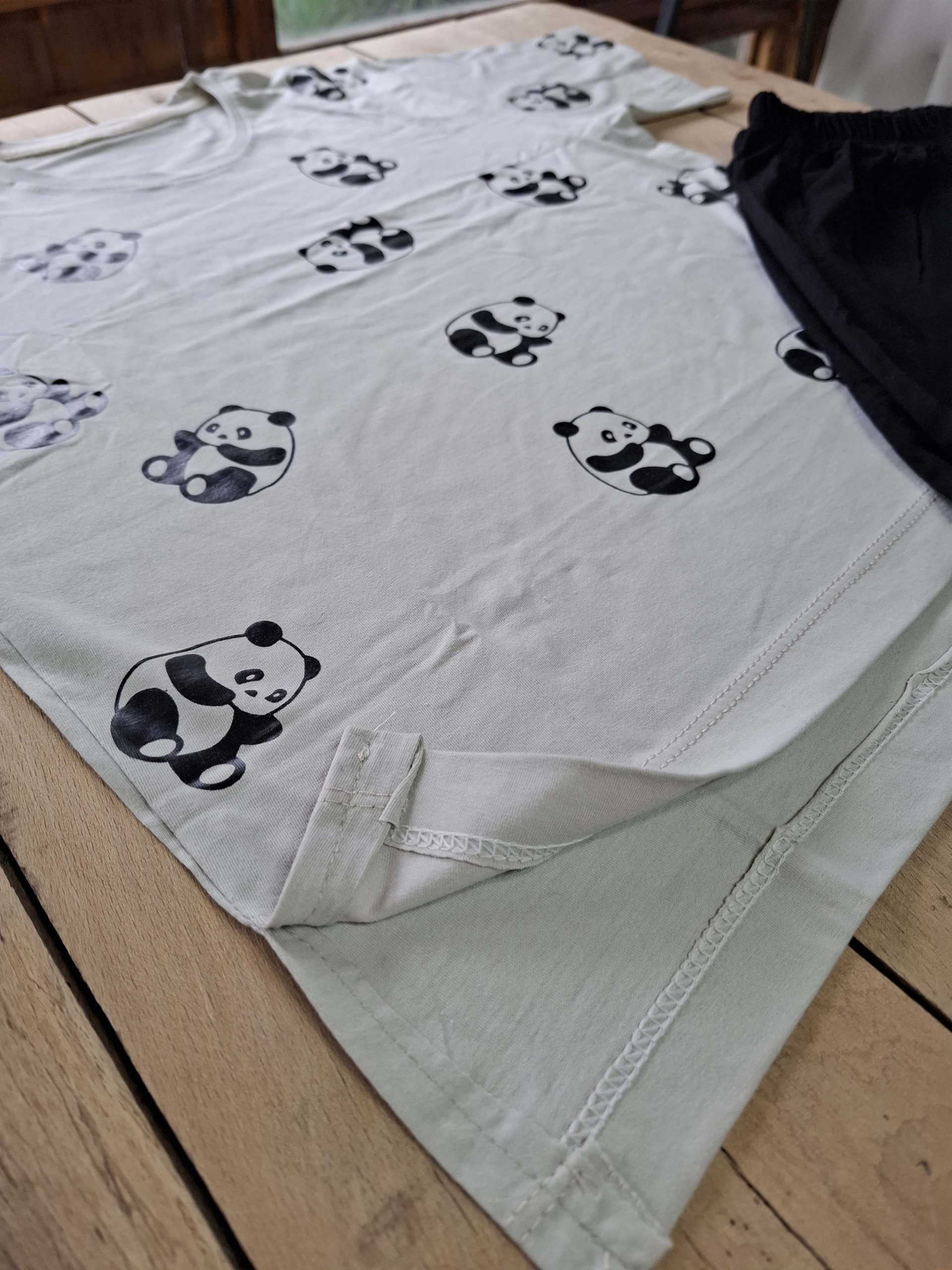 ست تیشرت و شلوارک فانتزی با تن‌خور آزاد، پشت  تیشرت بلند و لبه شلوارک  تاخورده