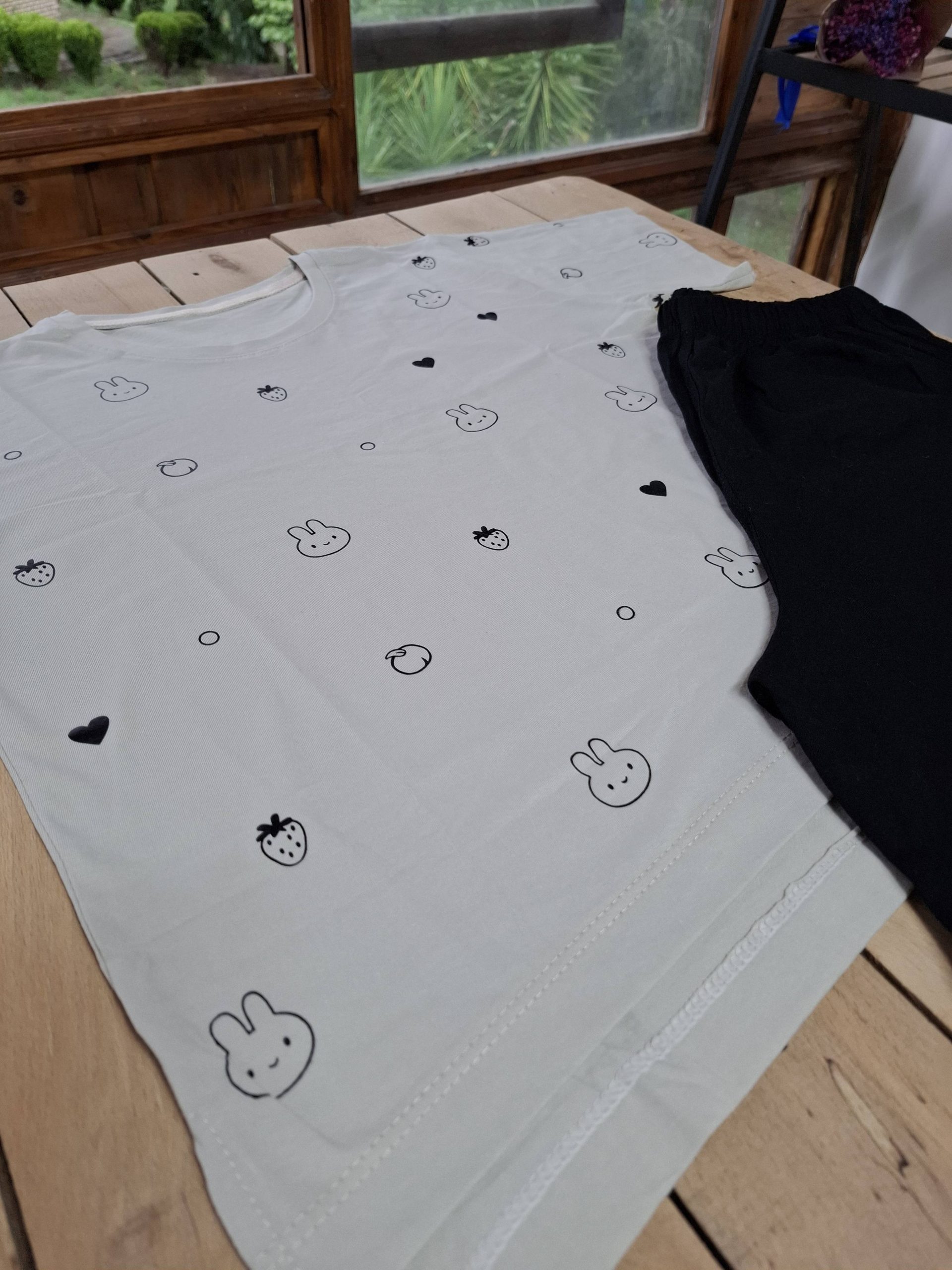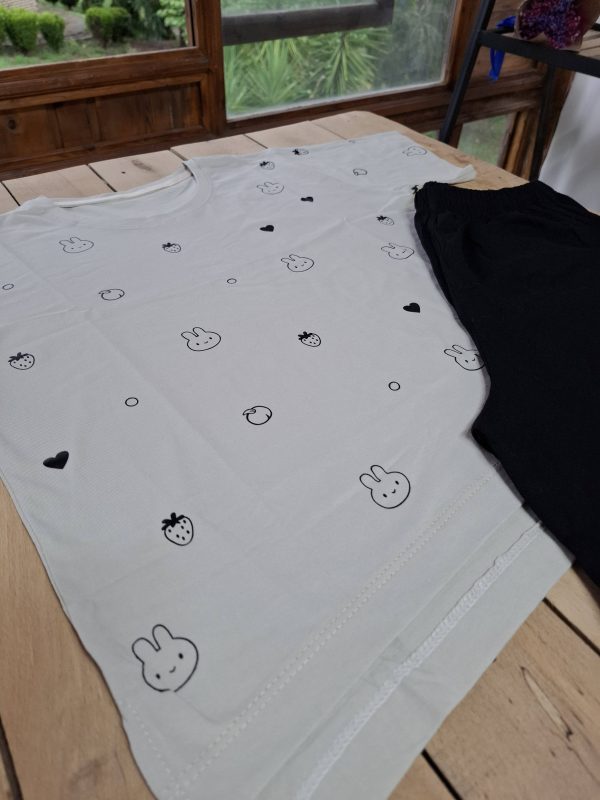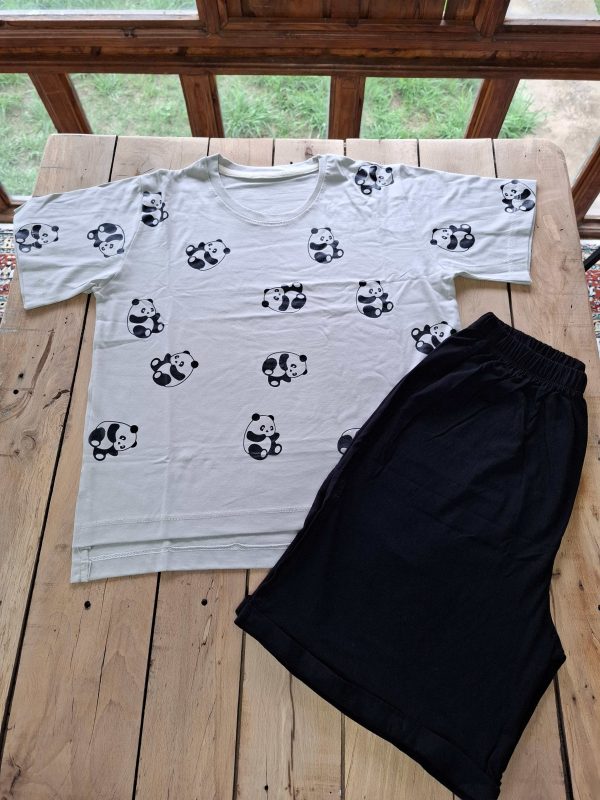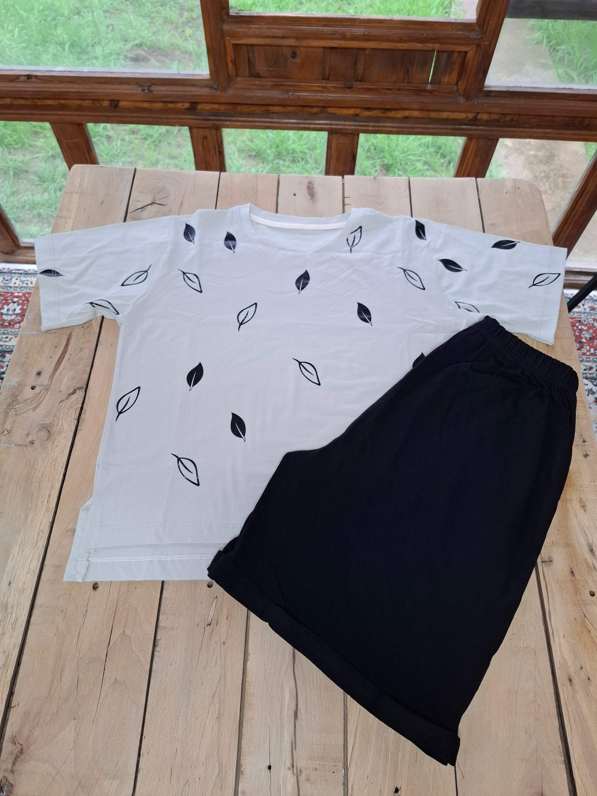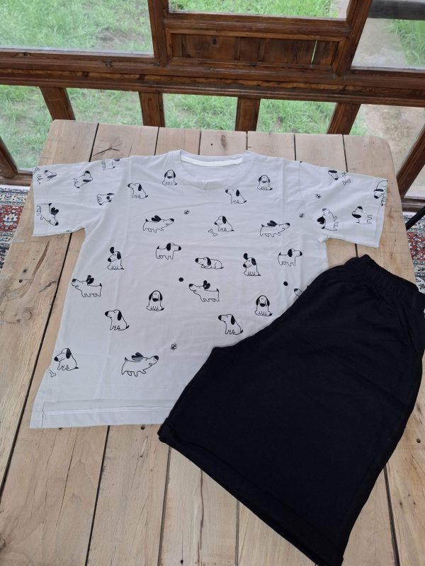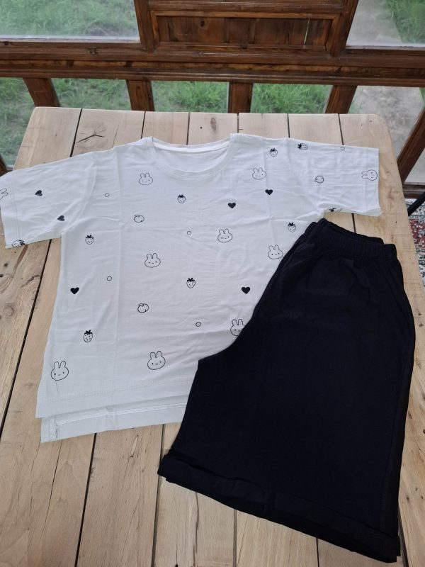 رنگ: سفید با طرح چاپی / شلوارک مشکی